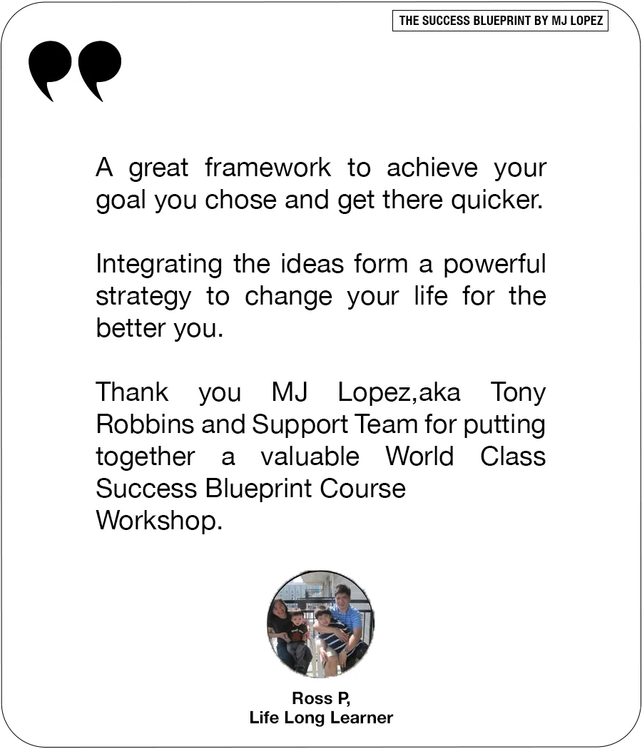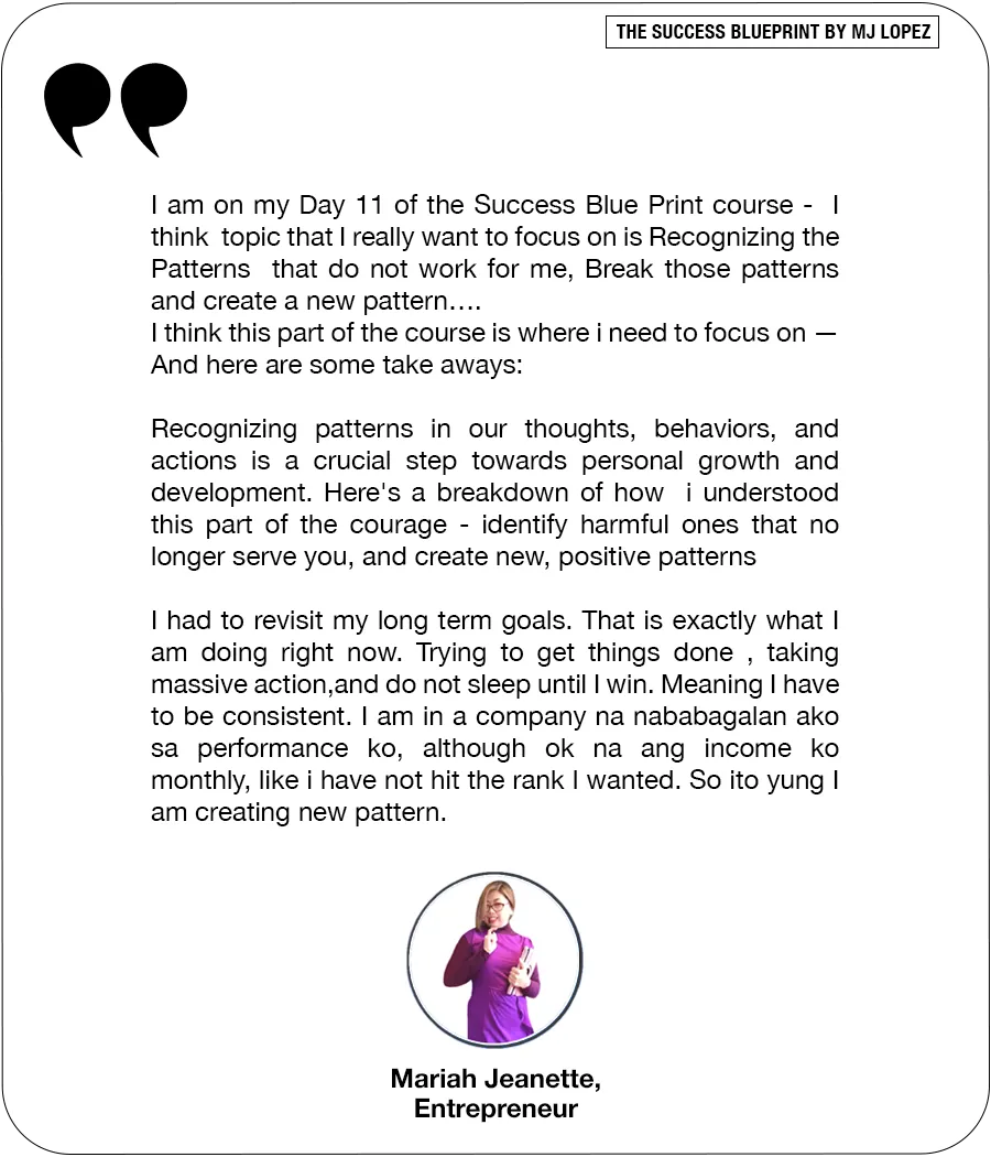 This isn’t just another self-help program. The Success Blueprint is grounded in MJ Lopez’s proven frameworks, combining mindset mastery with actionable strategies. It’s not about quick fixes—it’s about creating a solid foundation for sustainable success.